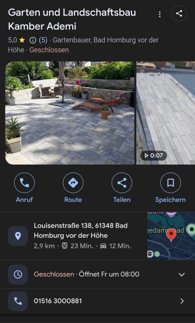 Geben Sie jetzt Ihre Bewertung für Garten und Landschaftsbau Kamber Ademi in Bad Homburg vor der Höhe ab. Mit Ihrer Hilfe können andere von