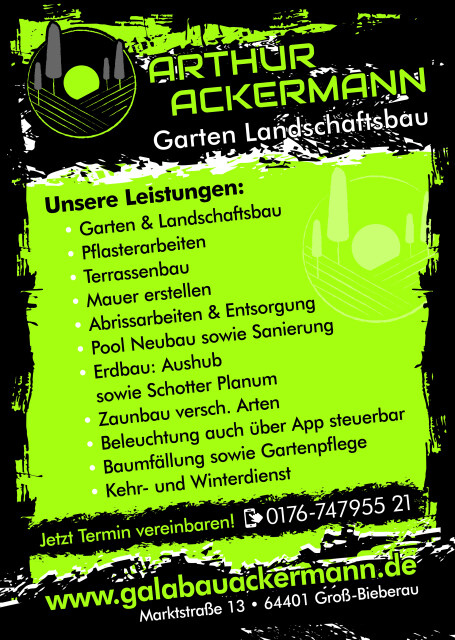 Herzlich willkommen bei Garten Landschaftsbau Ackermann – Ihrem professionellen Partner für Garten- und Landschaftsgestaltung in 64401 Groß Bieberau. Mit Leidenschaft und Fachwissen kreieren wir für Sie einzigartige Außenbereiche, die nicht nur das Auge erfreuen, sondern auch Ihrer Seele Ruhe und Erholung bieten.