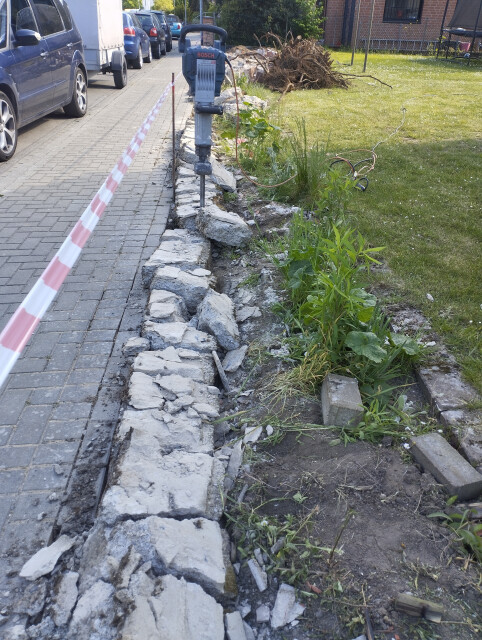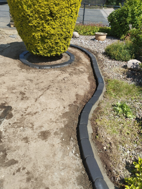 In unserem Vorgarten wurden Pflastersteine verlegt, L-Steine gesetzt, ein Fahrradbügel fachgerech